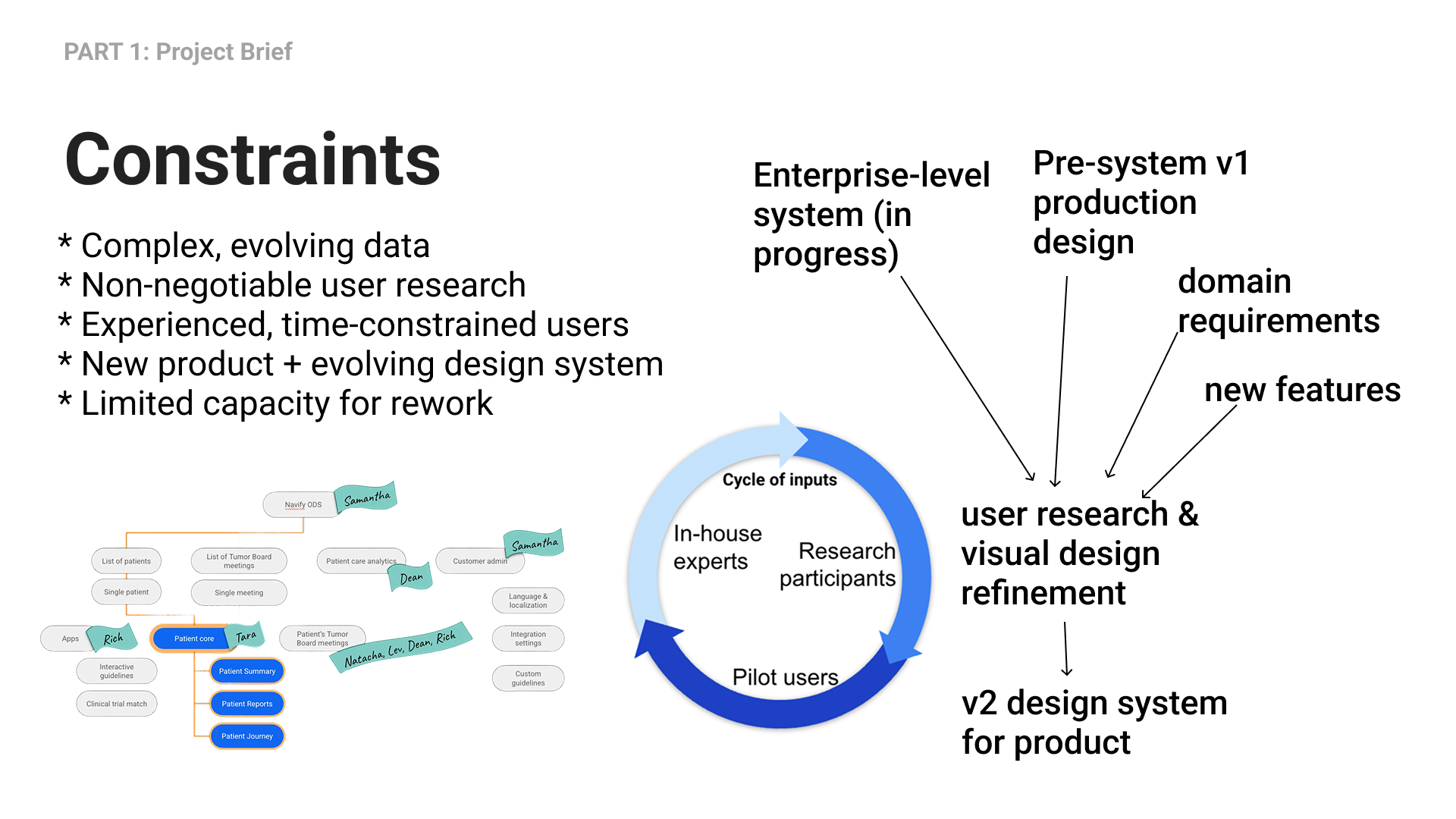 * Complex, evolving data* Non-negotiable user research * Experienced, time-constrained users* New product + evolving design system* Limited capacity for rework